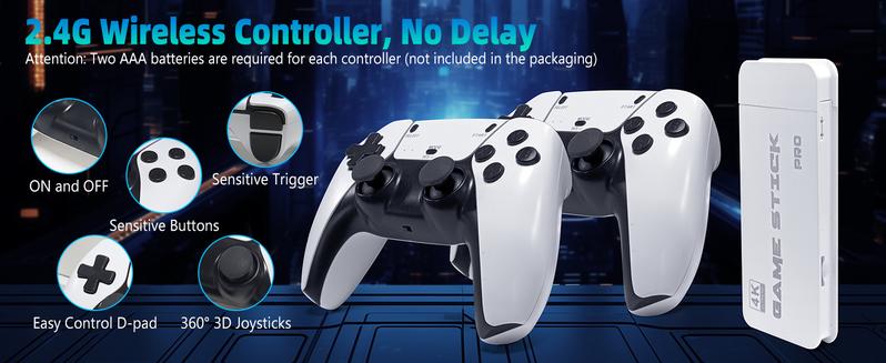 ● Two-Player Wireless Fun: Includes two 2.4GHz wireless controllers for simultaneous play, perfect for family gatherings or parties.