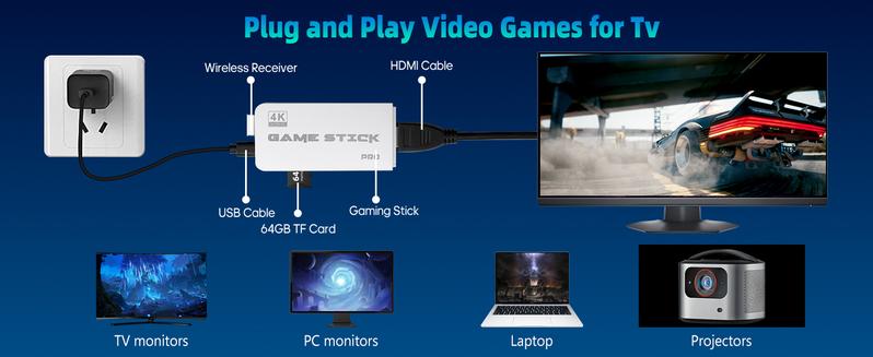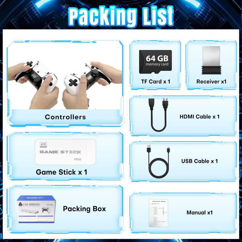 ● Plug and Play: Connect to TV and start playing instantly with simple setup—ready right after powering on.